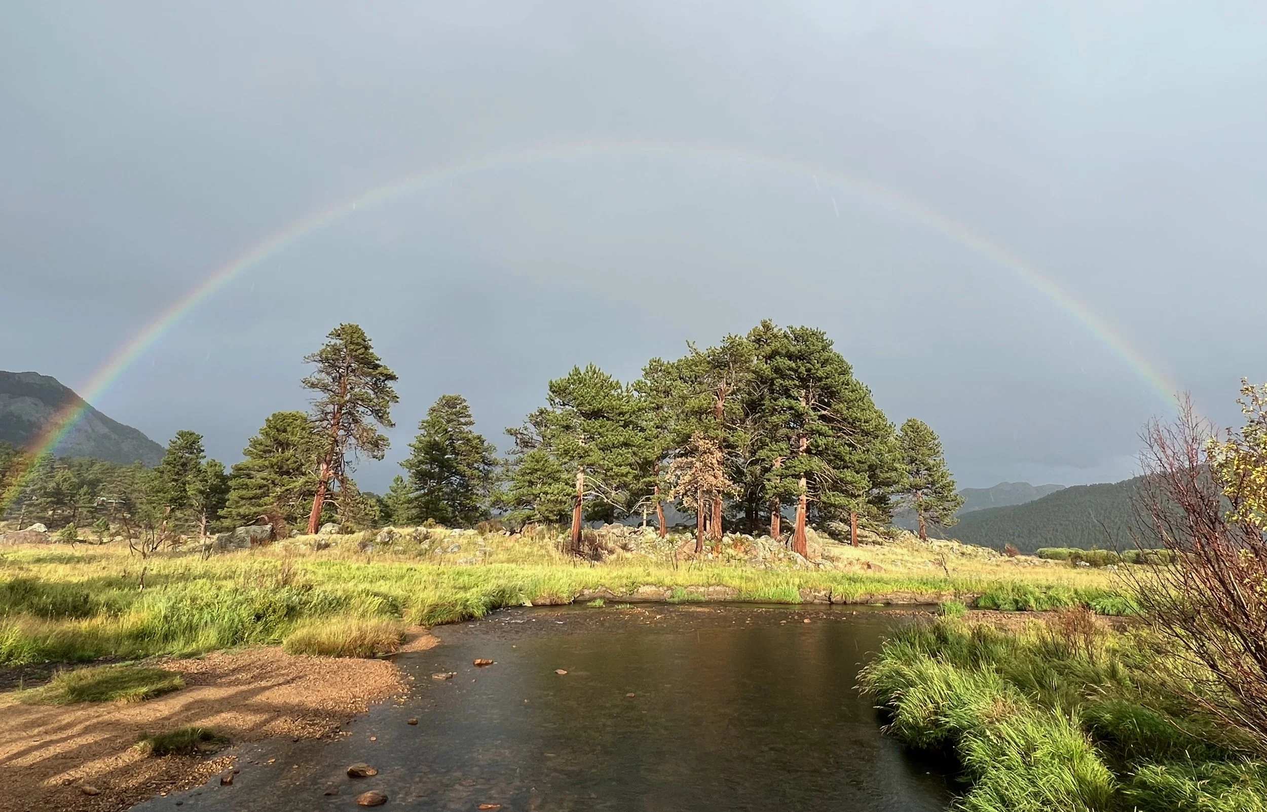 This moment was a one-in-a-million. I’m still, months later, in a state of complete awe and gratitude when I relive it. I had just stood in the rain watching a magnificent bull elk herding his cows across the river and was actually on the phone, describing it to my daughter in New York, when the sun came out and this rainbow spanned the river. What a moment! Thank you Universe!